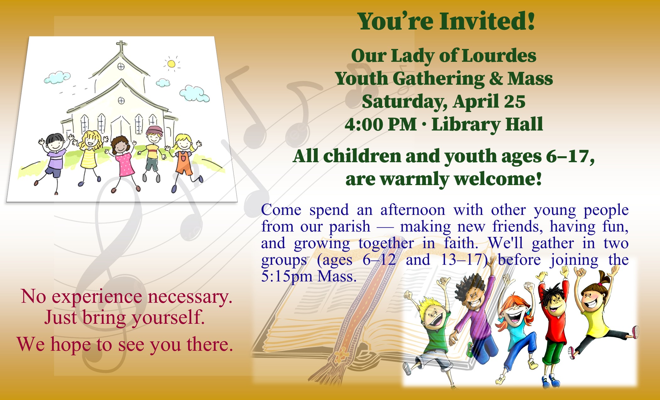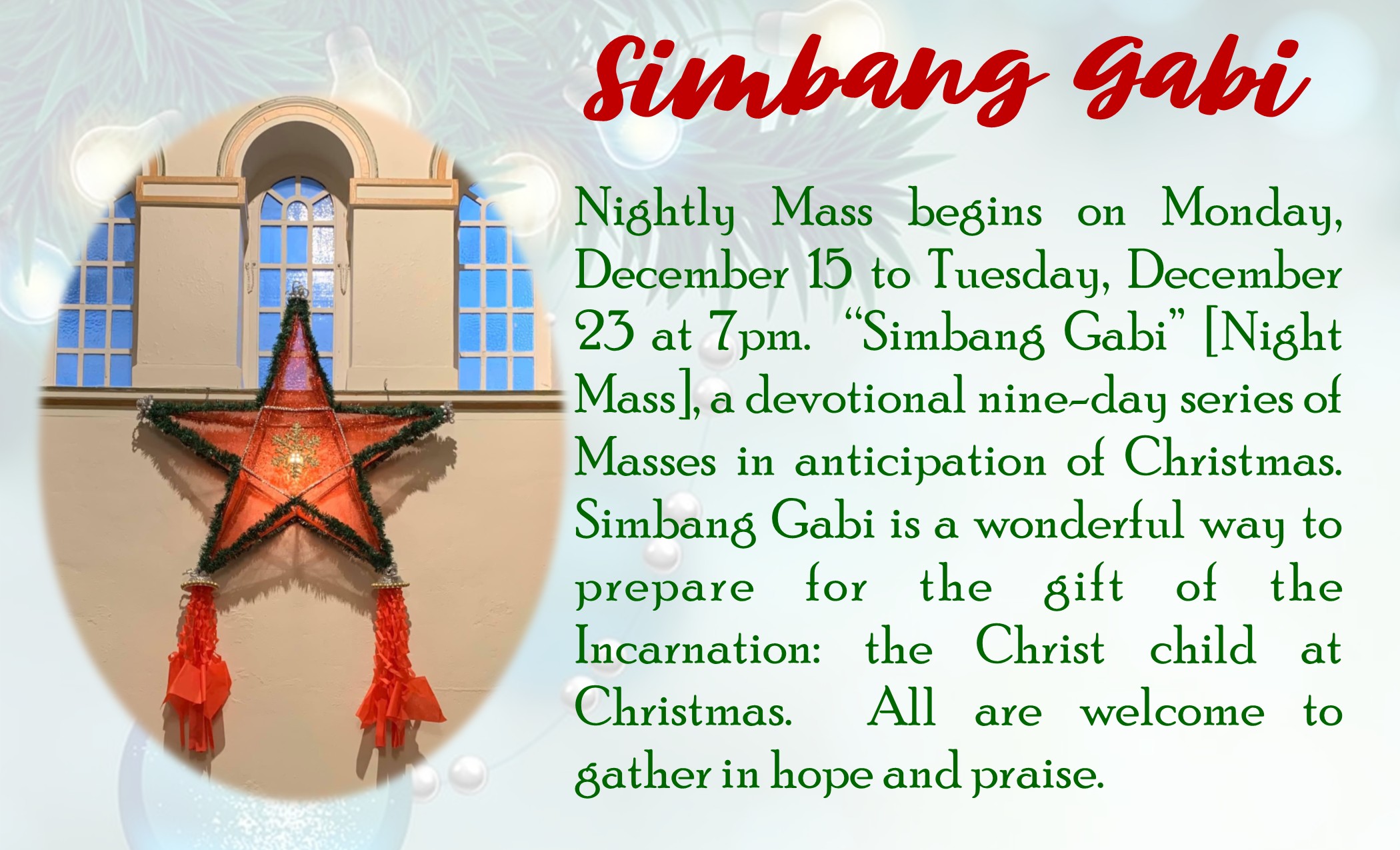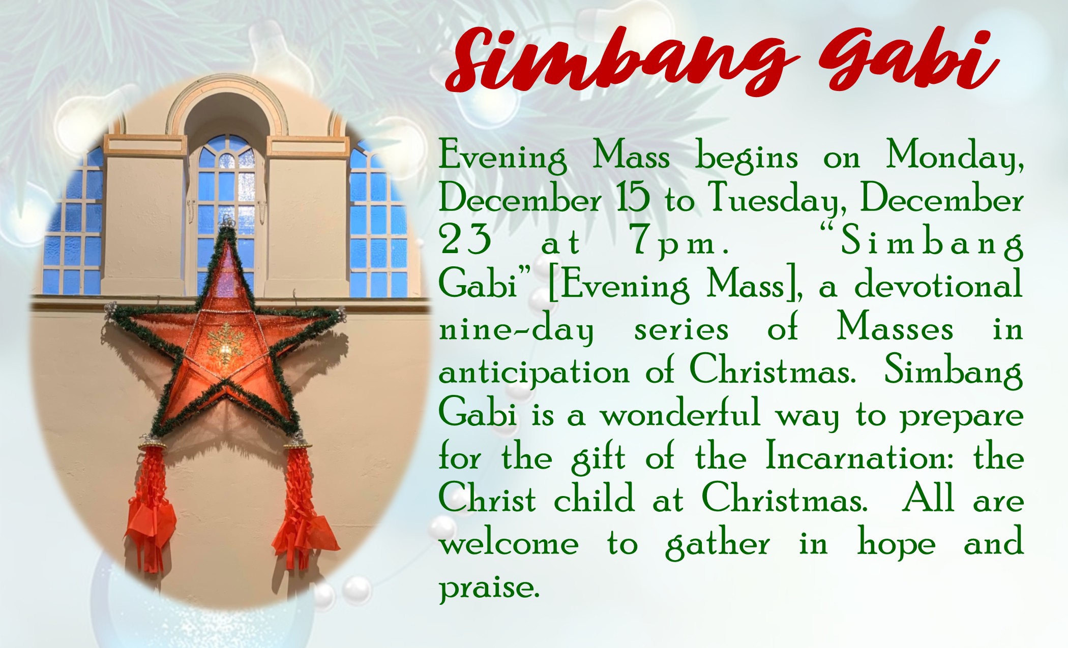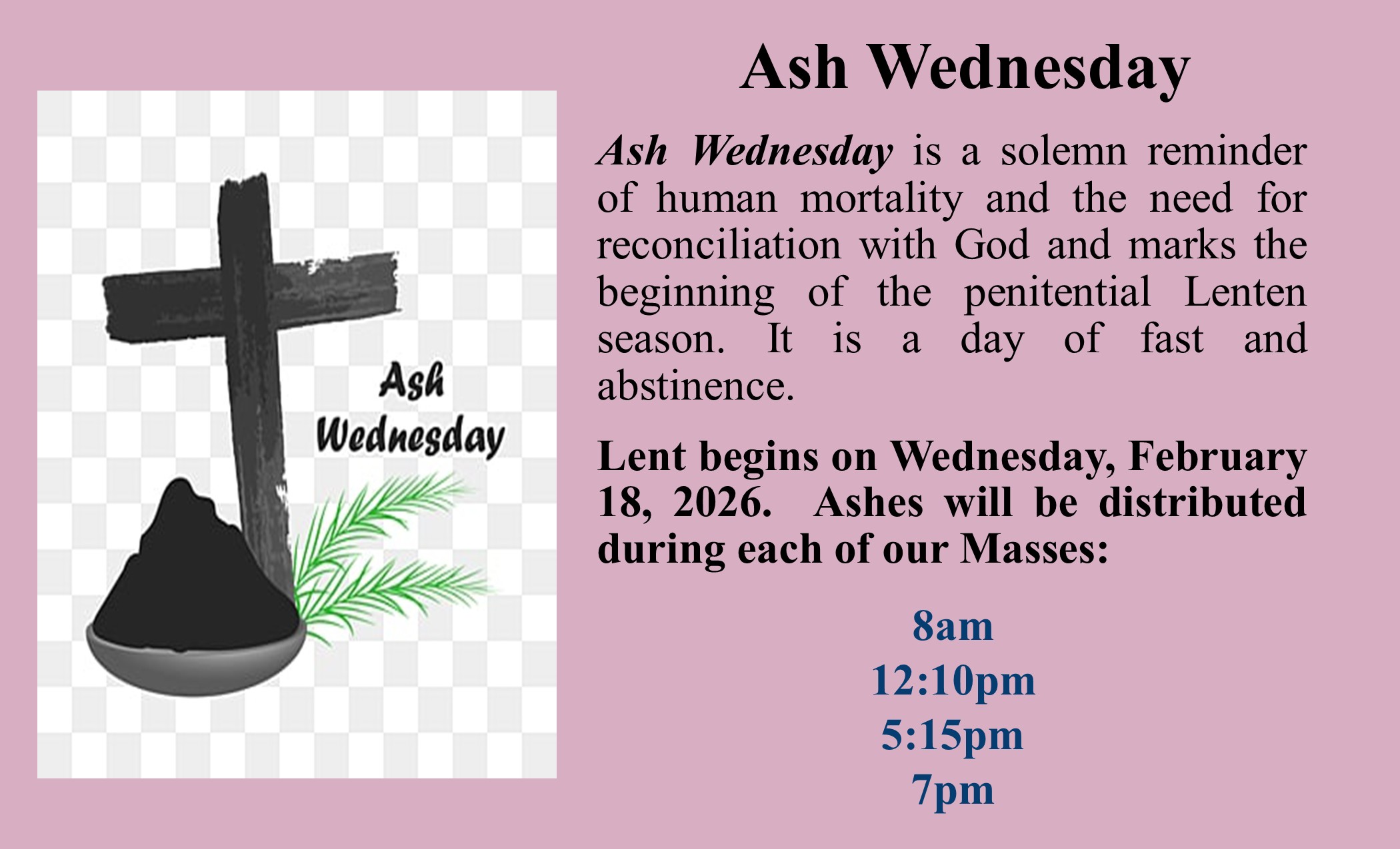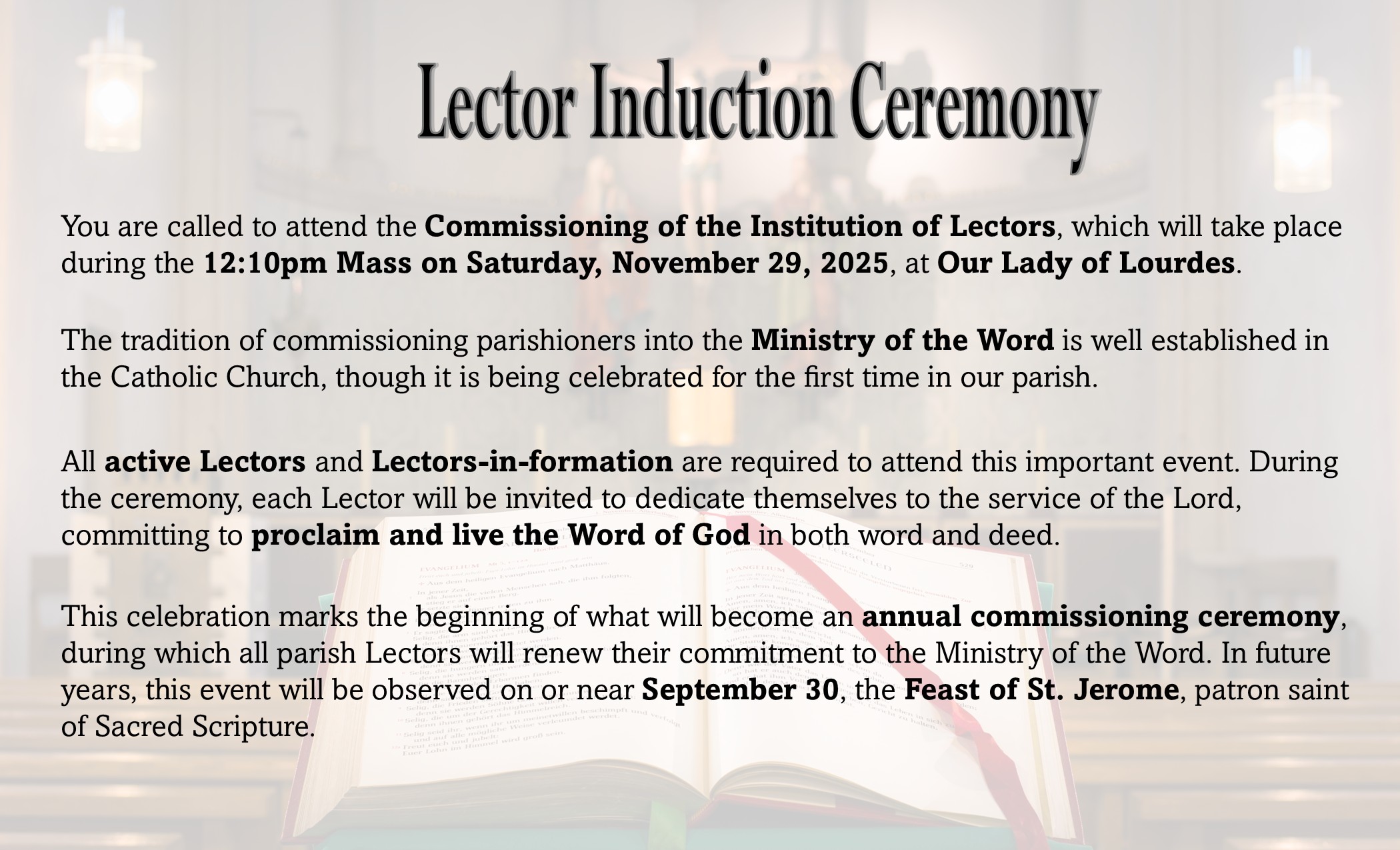 Saturday - 5:15pm - Anticipatory Mass for Sunday