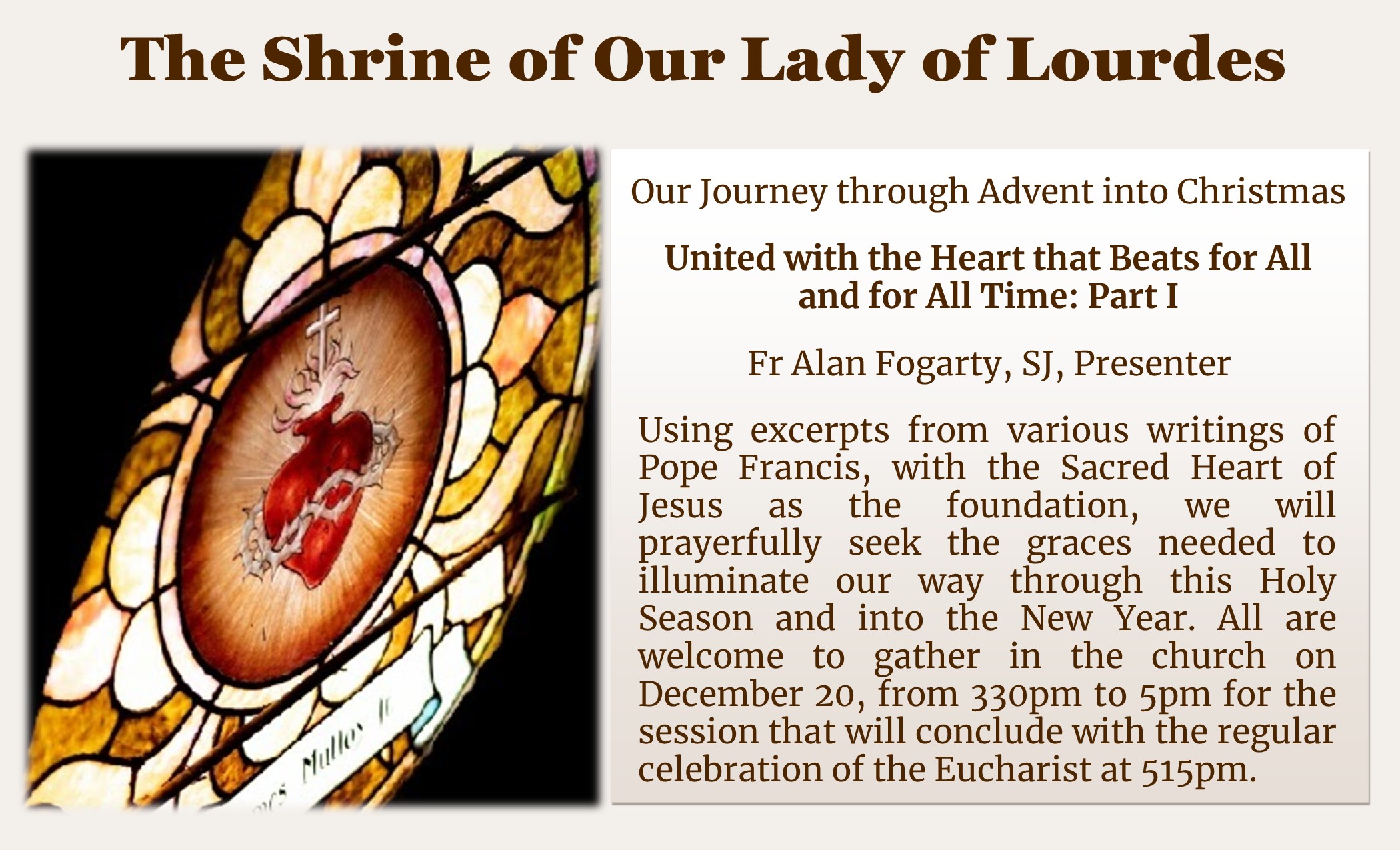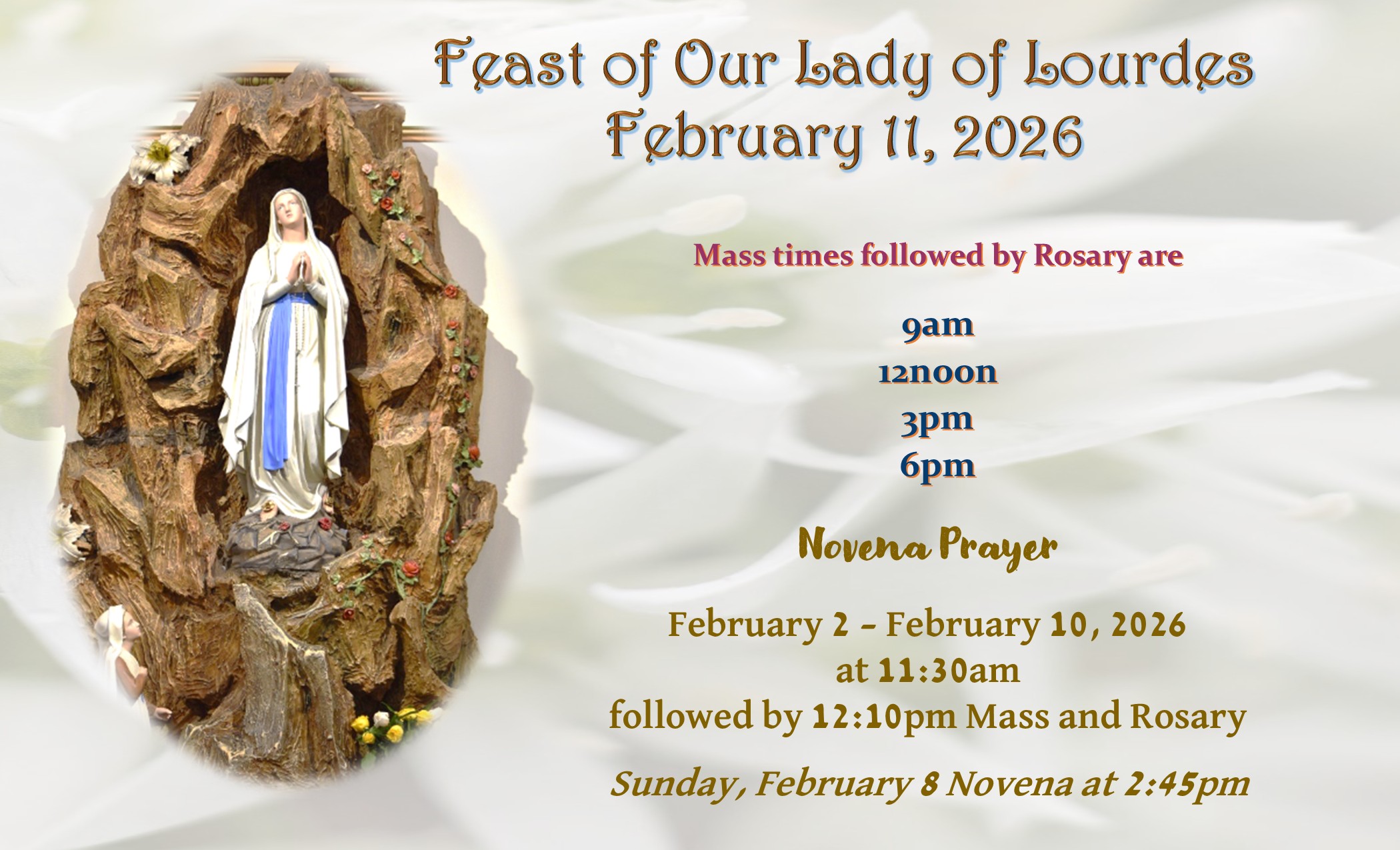 Live Stream: Monday to Saturday at 12:10pm on Lourdes TV