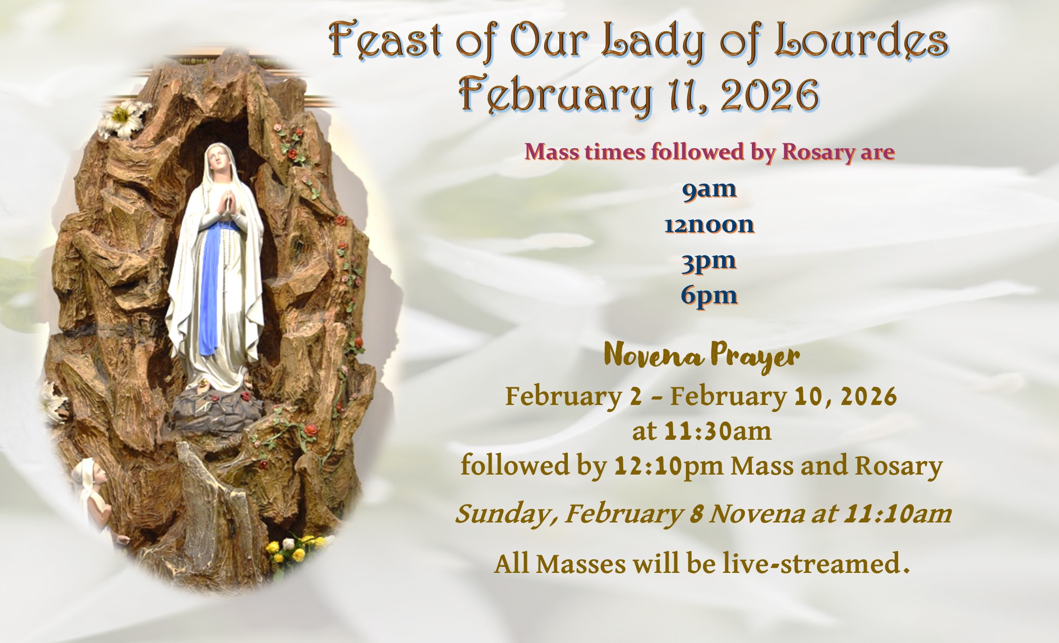 Live Stream: Sunday 11:30am on Lourdes TV