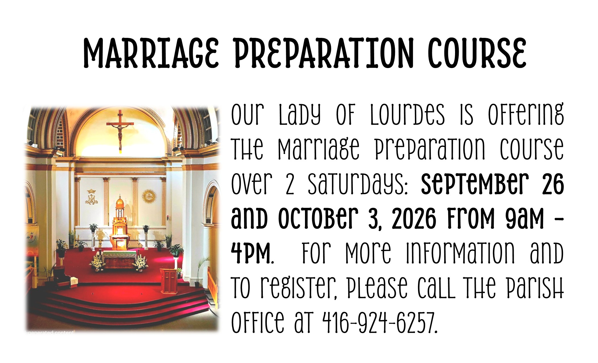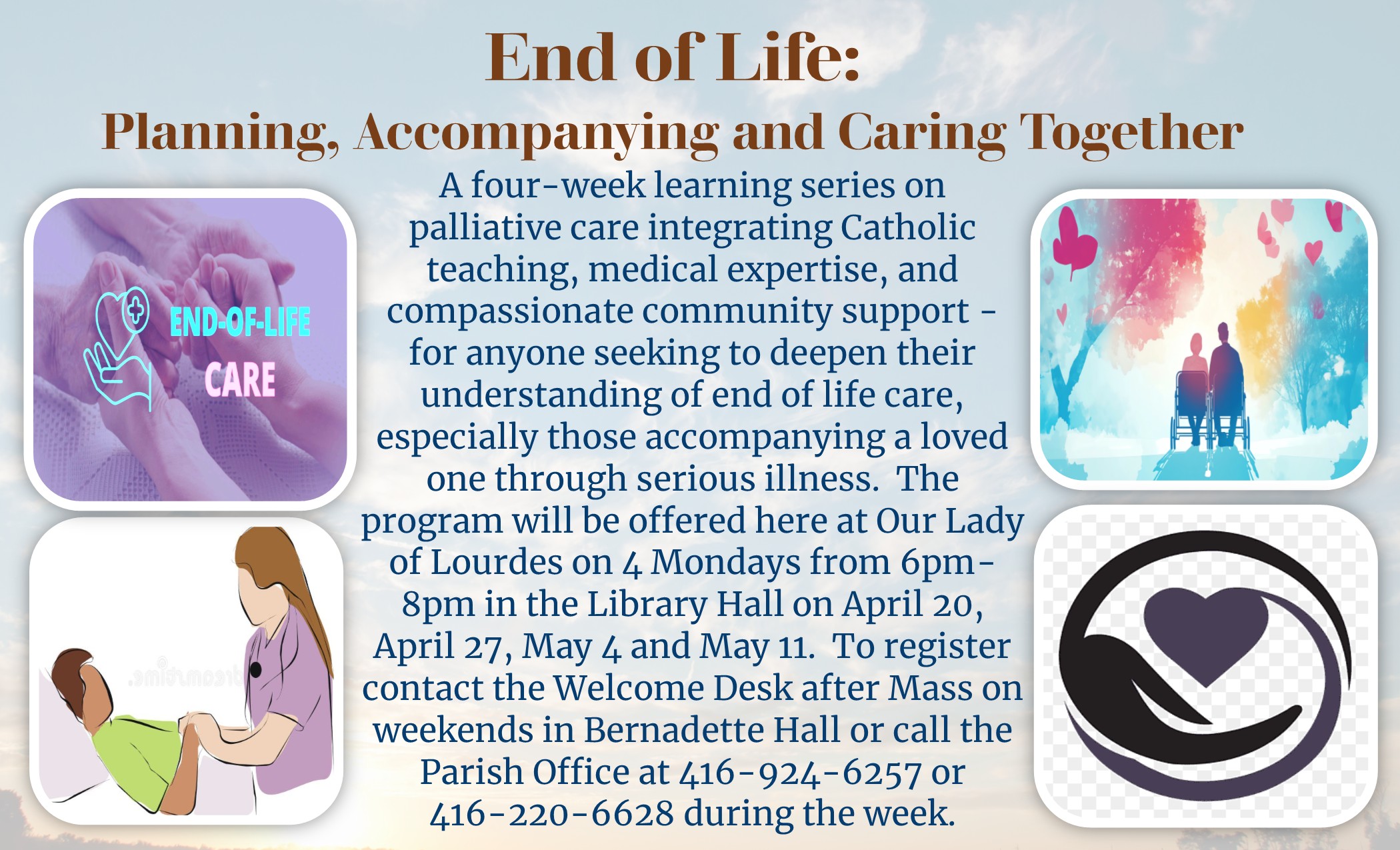 By appointment: contact the office at 416-924-6257 or info@lourdes.to